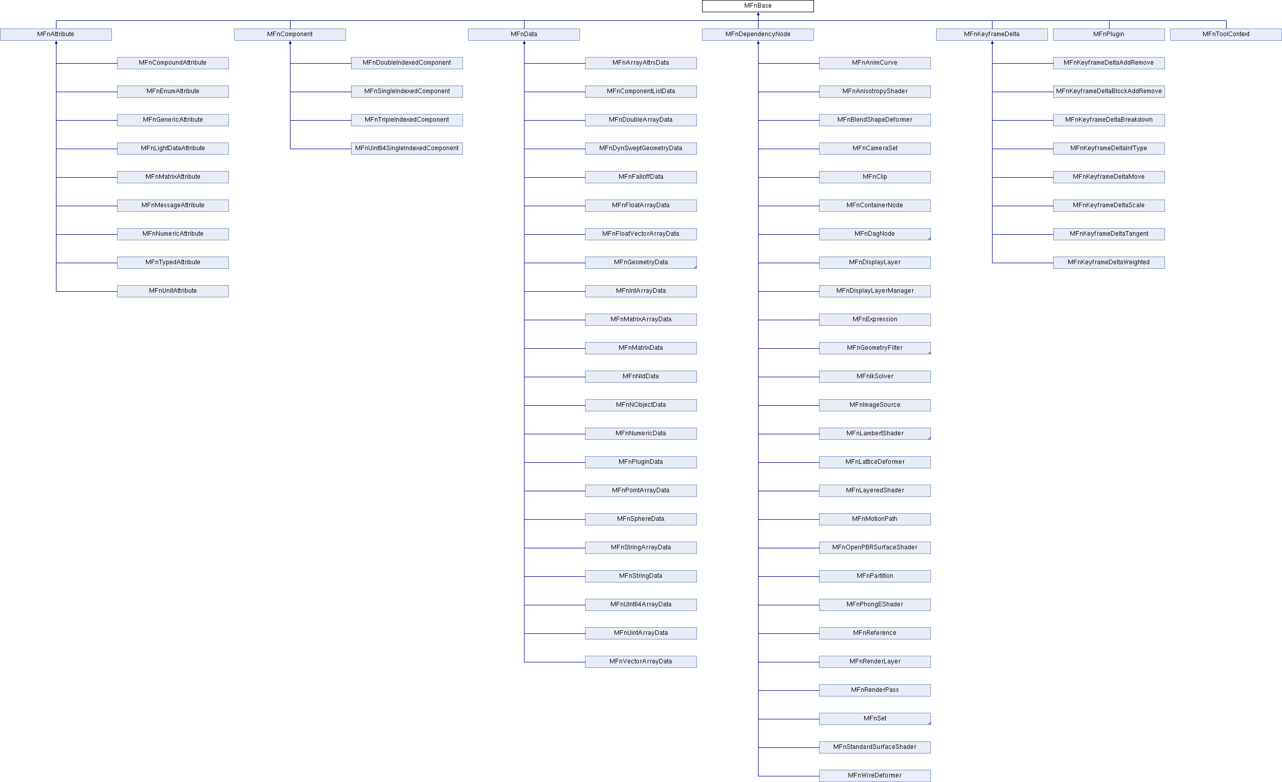 Inheritance diagram for MFnBase:Public Member Functions | |