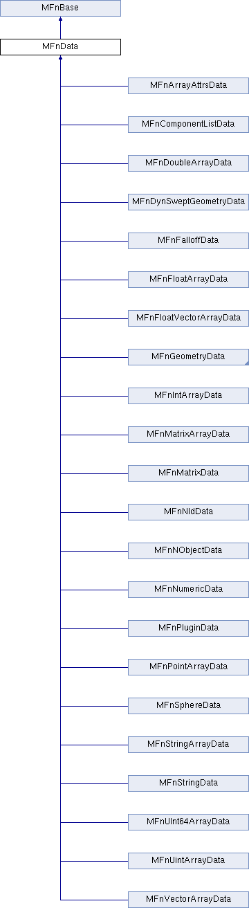 MFnData is the parent class for all dependency graph data function sets. Conceptually, data objects are what flow through the connections in the dependency graph.