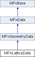 Inheritance diagram for MFnLatticeData:Public Member Functions | |