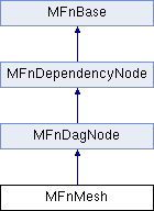 Inheritance diagram for MFnMesh:Public Member Functions | |