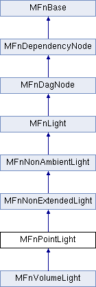 Inheritance diagram for MFnPointLight:Public Member Functions | |