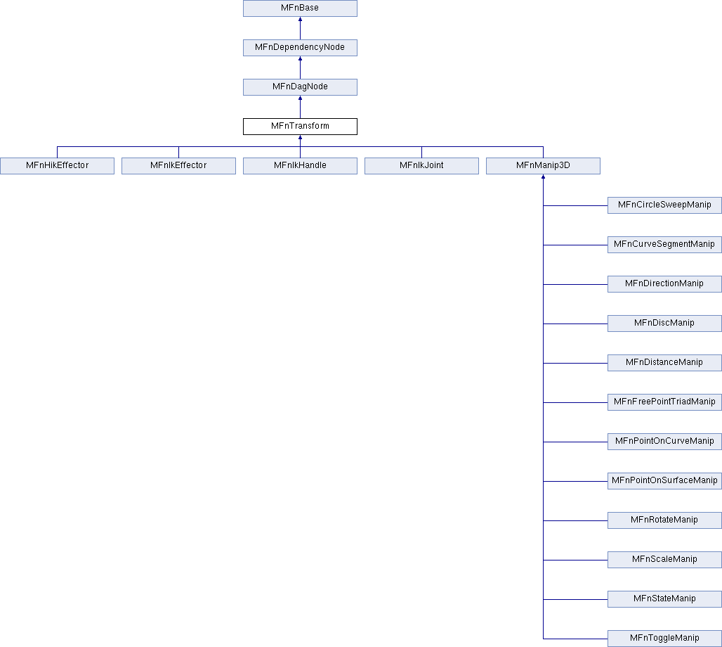 The MFnTransform function set provides access to transformation DAG nodes called transforms.