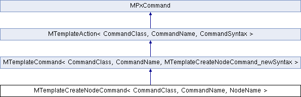 Inheritance diagram for MTemplateCreateNodeCommand< CommandClass, CommandName, NodeName >:Public Member Functions | |