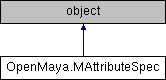 Inheritance diagram for OpenMaya.MAttributeSpec:Public Member Functions | |