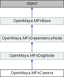 Inheritance diagram for OpenMaya.MFnCamera:Static Public Member Functions | |