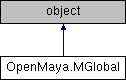 Inheritance diagram for OpenMaya.MGlobal:Static Public Attributes | |