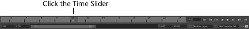 2. Click the Time Slider frame number where you want to set the key.