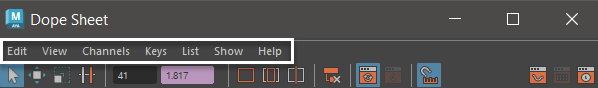The Dope Sheet Editor menu bar