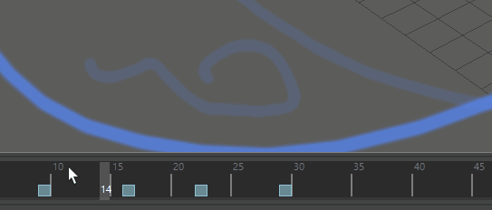 Tip: To add more than one frame at a time, Shift-select a range on the Time Slider, right-click and select Blue Pencil > Insert Frame(s). A Blue Pencil frame is created for each frame in the selected range.