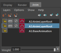 (See Mute, Lock, and Solo animation layers and Keyframe the weight of animation layers.)