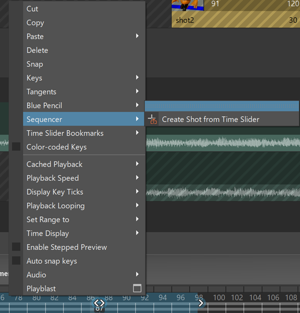 You can create a shot directly from a selected frame range in the Time Slider using the context menu.