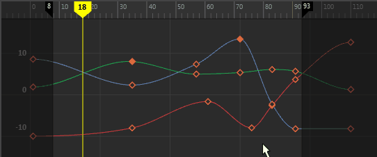 A graphical representation of interpolation between animation keys that you can modify.