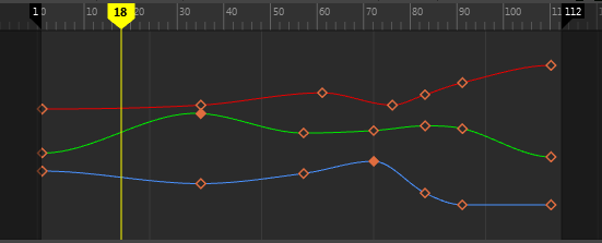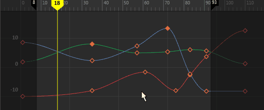 Select an animated object, for example, a model. Any interpolation between two keys is represented in the Graph Editor as animation curves. See Set keys and Keyframe animation and the Graph Editor.