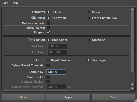 Bake To options to specify whether you want the animation baked to the