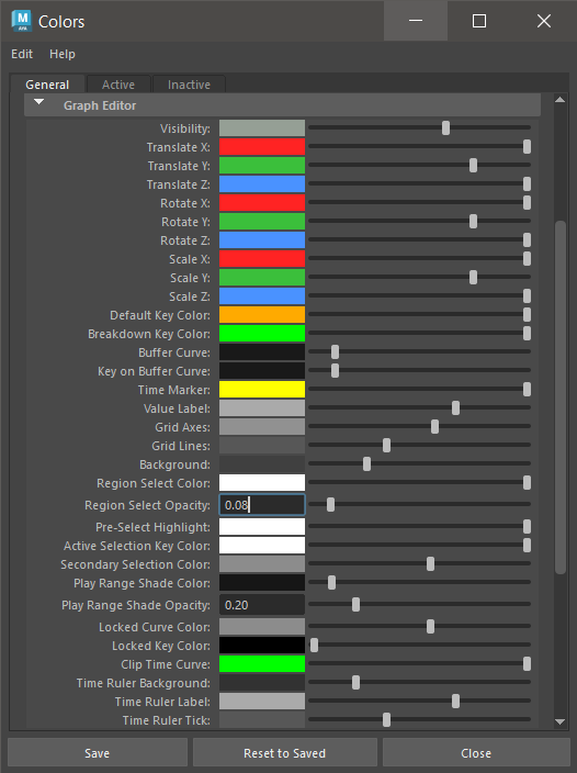 By default, curves are represented in the Graph Editor with colors that reflect which axis the curve represents. You can customize the color for an individual animation curve in the Graph Editor Change Curve Color option, found in the Graph Editor Edit Menu.