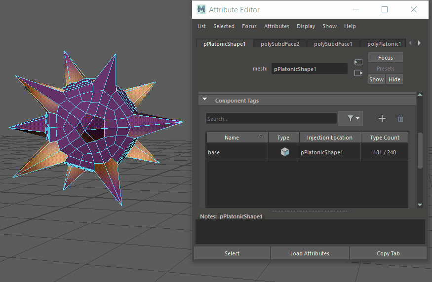 Component Tag: faces, vertices, or edges. (To select components on geometry, press