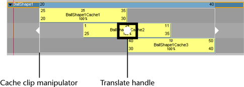 - Drag the translate handle to the left or right to move all the selected cache clips at the same time.