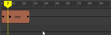A white dot on a child clip indicates that it is trimmed because of the parent clip. The white dot does not appear if a child clip is too small to display.
