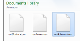 The ATOM (Animation Transfer Object Model) file type lets you efficiently save animation from one object (or hierarchy) and reload it onto another. ATOM options let you set precisely which animation to reuse and how you want to import and export it. After exporting, you can import animation based on the character hierarchy, name matching, or using a template file as a filter.