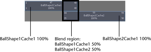 Geometry cache clips are blended automatically. By default, all the overlapping regions of your enabled geometry cache clips are automatically blended together using their cache clip’s current weight settings. See Input Weights.