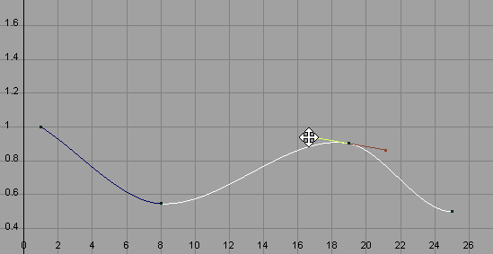 Select the Move Tool from the Maya toolbox, and middle-drag the keys or their tangent handles to change the shape of the weight curve.