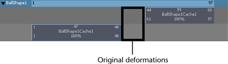 Sequential cache clips are not blended. When there are gaps between your geometry cache clips, they are filled with the live playback of your object’s original (source) deformations—not interpolated cache data.