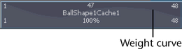 You can adjust the smoothness of your cache clips’ blends by adjusting their weight settings, or by manipulating their weight curves. For example, if you have two overlapping cache clips, one from frames 1-25 and the other from frames 20-45, and both their Input Weights are set to 0.5 (50%), then both cache clips equally contribute to their object’s deformations from frames 20-25 during playback.