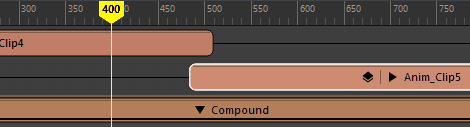 - Divides the animation at the position of the playback cursor. You can divide a clip into many clips, each containing different segments of the animation that you can reuse and reorder. Splitting a clip in the Time Editor is non-destructive to the source animation.