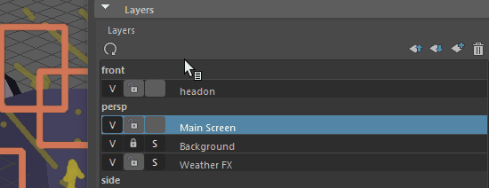 | Delete Active Camera Layer | Removes all layers assigned to a camera, for example, 'Persp'. |