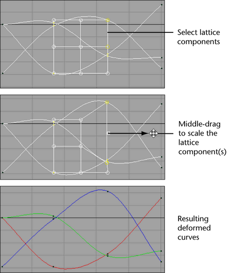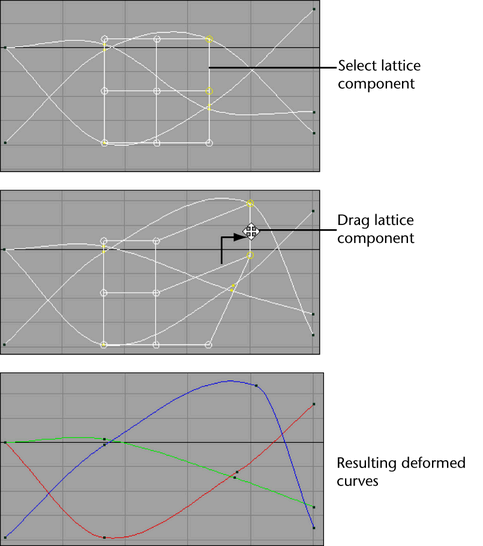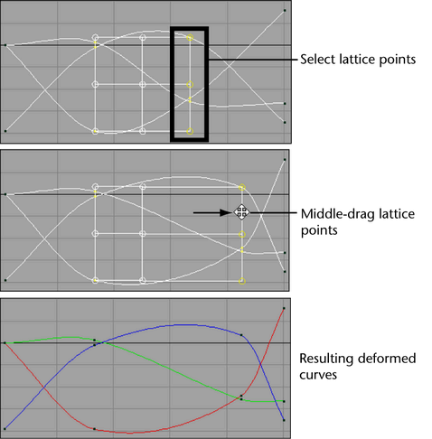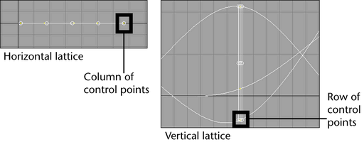 For example, if you select a lattice control point on a horizontal lattice, all of the lattice points in the selected point’s column are also activated. Depending on your current dolly-view scale in the Graph Editor, not all the selected lattice points may be visible. The visibility of the selected lattice points does not affect the functioning of this tool.
