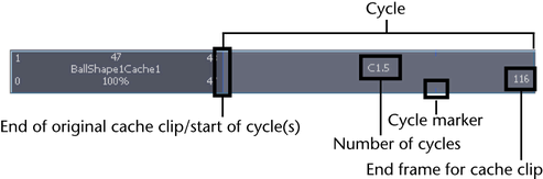 The end of the original cache clip, and the beginning of the first cycle, is marked by a small vertical line. The end of each cycle sequence for a cache clip is marked by a small cycle tick or marker.