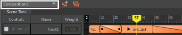 Compositions in the Time Editor let you create multiple versions of the Time Editor within a Maya scene, letting you experiment with different versions of the same animation. Imagine a clip like a moment of a film recorded on-set, that is then assembled with other clips in the editing room to become a movie. A composition is like different versions of the same movie. You can create compositions in a scene and switch between them to create different versions of the overall animation.