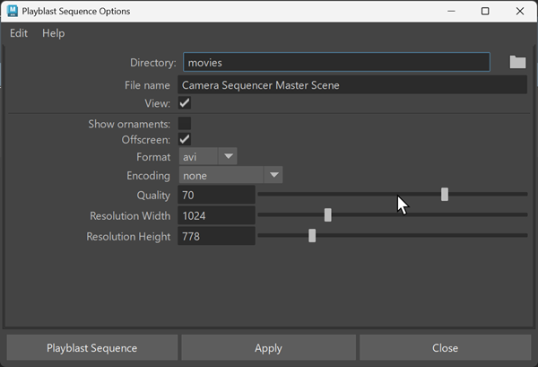 Playblasting shots in the Sequencer editor creates movie clips from shot cameras or from the entire sequence.