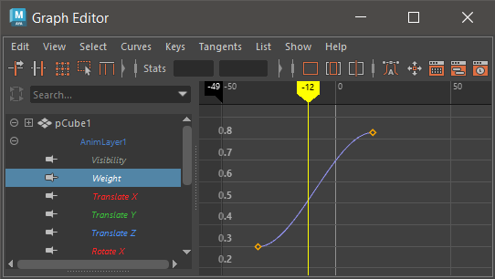 To view the layer’s Weight animation in the Graph Editor