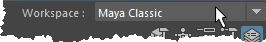 The Workspace drop-down menu is at the upper right of the Maya interface