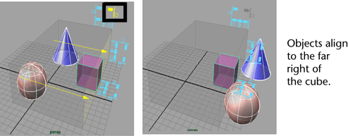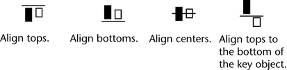 - Click an icon to align the objects. The icons show how the bounding boxes align. For example: