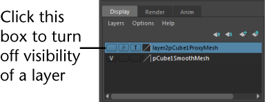 You can toggle the visibility of a display layer to control whether objects display in the 3D view.