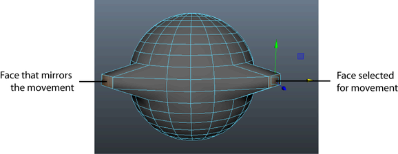 The transform manipulator snaps to the selection and the component(s) on the opposite side of the mesh are also selected.