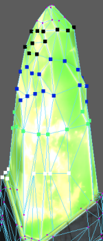 Likewise, when interpreted on a 0.25-2 scale, the vector (0.8, 2.0, 1.1) has a dominant G value. The vertices are therefore displayed mainly as green.