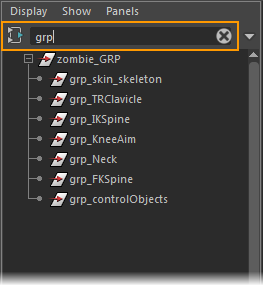 - You can start typing a string in the Search field, and the nodes are automatically filtered to match the string as you type.