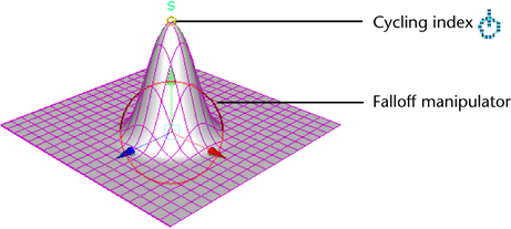 - Drag the falloff manipulator circle to adjust the falloff radius.
