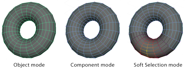 There are three selection modes: Hierarchy, Object and Component. You use these modes in order to limit or mask the selection of other objects in order to select only the types of items you want: top level of node hierarchies, complete objects, or object components. When you use a selection mask you are filtering out or masking items you don’t want to be chosen as part of the selection.