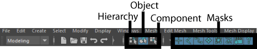 When you first start Maya, the selection mode is set to Object. This is useful for much of your selection work with Maya, with a few exceptions. When you want to select items that have been grouped, set the selection mode to Hierarchy.