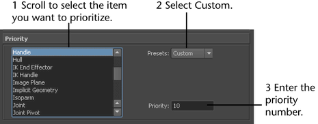 Modifiers control Maya selection operations. They work with masks to control what is displayed when you select items. You can turn on one or more of the following: