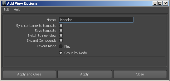 The Add View Options appear.