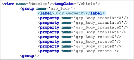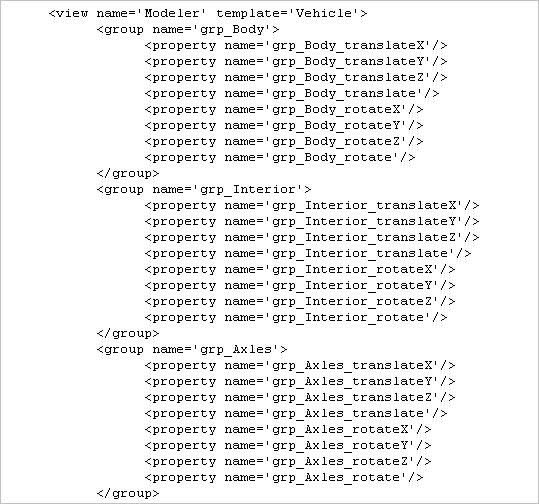 Because the Group By Node option was turned on when you created the Modeler view, all the attributes in the XML file are grouped under “group name” headings.