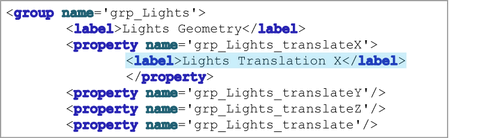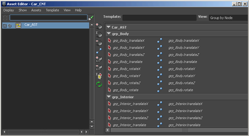 The asset’s attributes are currently organized using the default Group By Node layout. Each group of attributes displays under a heading based on its parent node name.