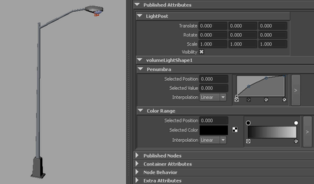 Published attributes appear in the Attribute Editor in the Published Attributes section or at the top of the Channel Box under the asset they are published to.