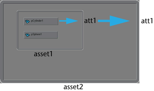 For example, in the case below you can publish pCylinder1’s att1 to asset2 since it is published to asset1. On the other hand, you cannot publish any of pSphere1’s attributes to asset2.