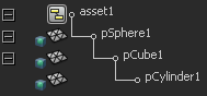 For example, in the above hierarchy, pSphere1 is published as asset1’s root node. If Asset centric selection is on and you select pCylinder1 with the Move Tool, Maya selects pCube1 if it has one or more published translation attributes. Even if pSphere1 also has published translation attributes, Maya still selects pCube1 because it is the first node with the appropriate published attribute(s) encountered by a traversal up the hierarchy.